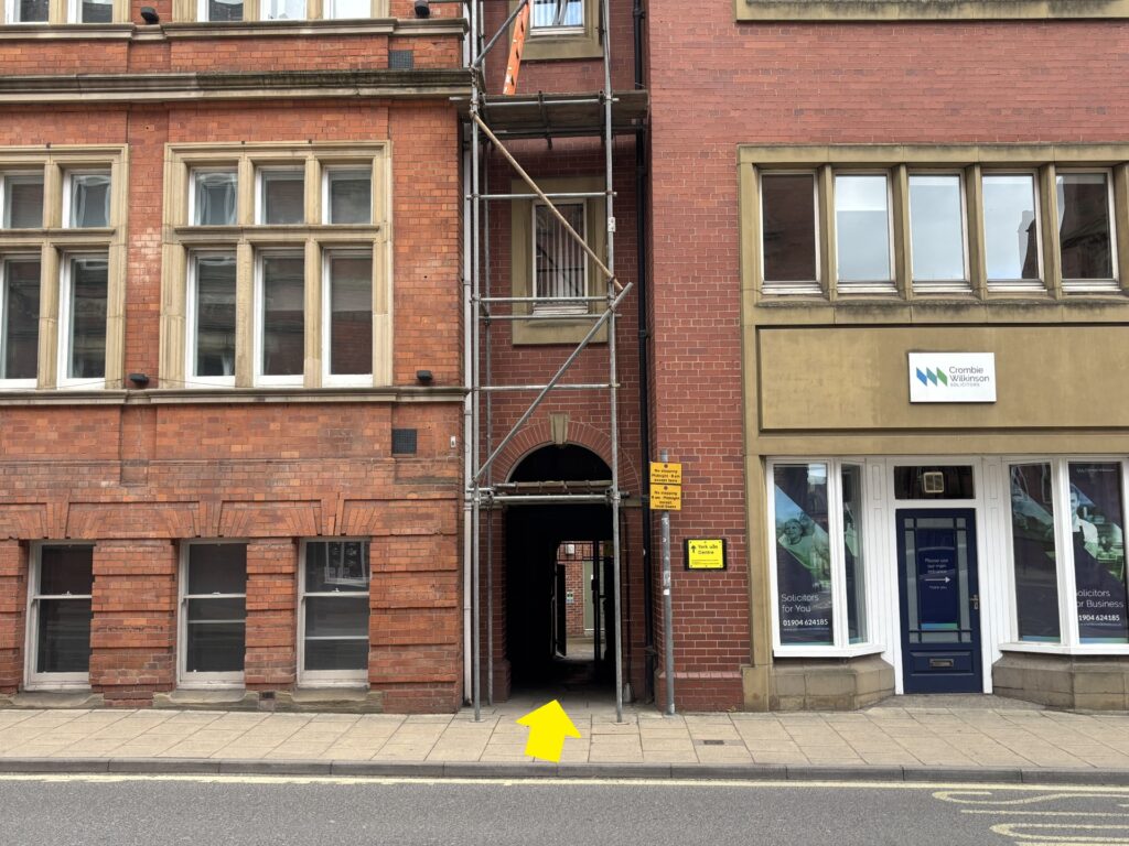 Access to the office is via a passageway next to Crombie Wilkinson Solicitors (What Three Words: ///fills.deeply.career)